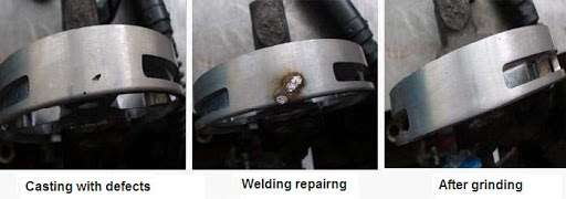 In production practice, repair welding is not allowed for some casting defects, such as penetrating cracks, penetrating defects (bottom penetration), gas holes shaped like honeycombs, sand and slag inclusions that cannot be removed, shrinkage porosity with an area of more than 65 square centimeters and other major defects which cannot be repaired as agreed in the contract between the two parties. The type of defect should be judged before repair welding.